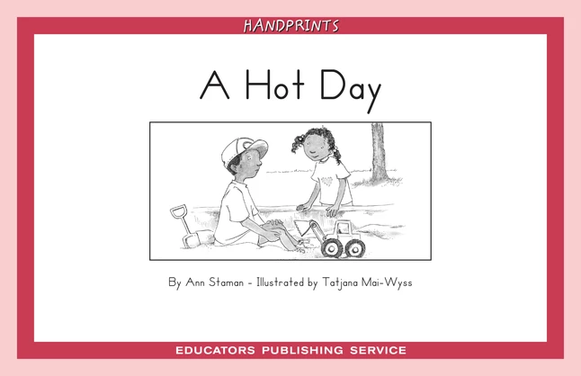 In this storybook (with Guided Reading Level C, Reading Recovery Level 4, and an 86-word count), students will get to read about how Jess wants to play with her brother, Willy, on a hot day. This story features a beginning/middle/ends, strong picture support, and spaced line placement that encourages phased reading. “Sandbox” is a key compound word. Inflected verbs include: playing, looked. High-frequency words include: you, here, can. Handprints program also features other books with Jess and/or WIlly, which include: Up and Down, Level C/4 (Set C1); The Black Kitten, Level E/8 (Set C2); Jess in the Snow, Level E/8 (Set C2); Dollyβs Car, Level H/14 (Set C2); The Race, Level E/8 (Set C3); Life in the City, Level E/8 (Set D1); The Car Wash, Level F/9 (Set D1); The Birthday PiΓ±ata, Level H/14 (Set D2); and Dear Grandpa, Level J/18 (Set D3).