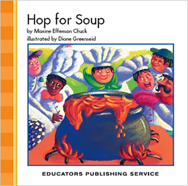 In Hop for Soup, soup becomes a meal for many! This vibrant and enjoyable decodable reader provides students the opportunity to apply their newly learned phonics skills to connected text while they practice and build fluency. Phonetic concepts and sight words are listed on the inside back cover, along with a comprehension question to extend students’ thinking.